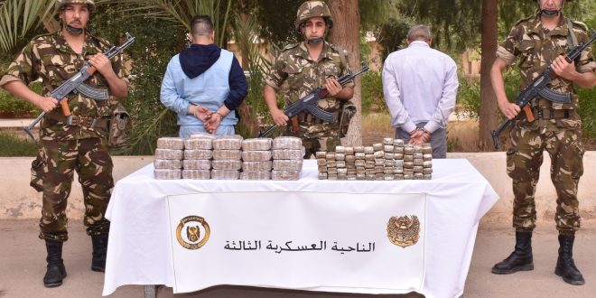 في إطار محاربة الجريمة المنظمة ومواصلة للجهود الحثيثة الهادفة إلى التصدي لآفة الاتجار بالمخدرات ببلادنا، أوقفت مفارز مشتركة للجيش الوطني الشعبي، بالتنسيق مع مختلف مصالح الأمن خلال عمليات عبر النواحي العسكرية، (123) تاجر مخدرات وأحبطت محاولات إدخال (19) قنطار و(21) كيلوغرام من