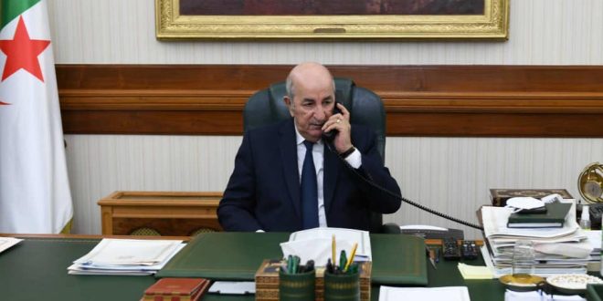 وجاء في البيان: “تلقى, اليوم, رئيس الجمهورية السيد عبد المجيد تبون, مكالمة هاتفية من أخيه السيد محمد ولد الشيخ الغزواني, رئيس الجمهورية الاسلامية الموريتانية الشقيقة, تطرقا فيها إلى العلاقات الاخوية التي تجمع البلدين و سبل تعزيزها في كل المجالات, بما يخدم مصلحة الشعبين, الجزائري و الموريتاني”.