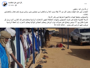 وأفادت الصفحة الرسمية للولاية أنه و”بعد تفشي بعض الأمراض المتنقلة والقادمة من دولتي النيجر ومالي ، ولاسيما مرض الدفتيريا الذي أودى بحياة 15 طفل ، بحي الزاوية (تين الهوى) والملاصق لأحد مخيمات النازحين الفارين من الأحداث الأمنية الواقعة في شمال دولة مالي ، المتوفين هم أجانب قادمين من صحراء دولة مالي ولم تشملهم عمليات التلقيح السابقة برغم من تنظيم عدة قوافل للتلقيح بذات الحي” .