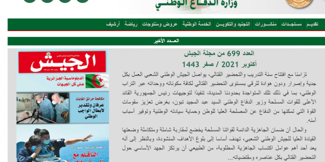 كما عرجت الافتتاحية, في سياق ذي صلة, على التمرين التكتيكي المركب “الردع 2021” الذي أشرف عليه رئيس أركان الجيش الوطني الشعبي, الفريق السعيد شنقريحة, بإقليم الناحية العسكرية الثانية والذي ينم عن “إرادة راسخة لتطوير قوام المعركة و ضمان الانسجام العملياتي بين مختلف القوات”, وبالتالي “جاهزيتها المطلقة للتعامل مع أي طارئ أو تهديد, مهما كان نوعه أو طبيعته”.