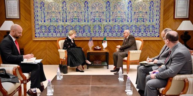 استقبل وزير الدولة، وزير الشؤون الخارجية والجالية الوطنية بالخارج والشؤون الإفريقية، أحمد عطاف، الاثنين، سفيرة الولايات المتحدة الأمريكية بالجزائر، إليزابيث مور أوبين، حسب ما أفاد بيان للخارجية.