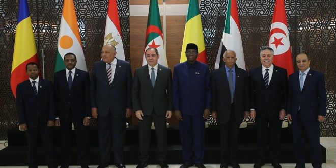 وعقد الاجتماع في قصر المؤتمرات غرب العاصمة الجزائرية بحضور وزراء خارجية كل من الجزائر وتونس وليبيا ومصر والسودان والنيجر وتشاد والكونغو الديمقراطية، وبمشاركة الأمم المتحدة والاتحاد الأفريقي والجامعة العربية