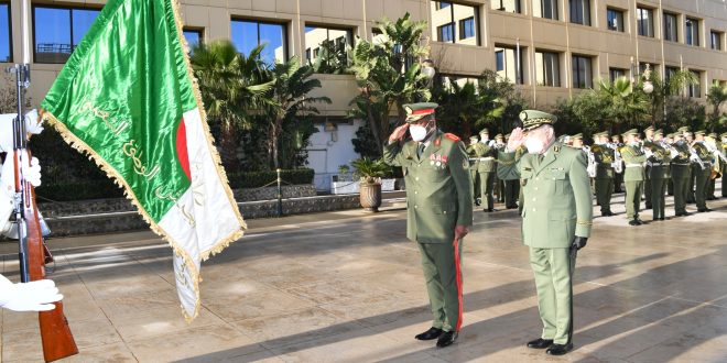 مراسم الاستقبال، استهلت بتحية العلم الوطني وتقديم التحية العسكرية للضيف من قبل تشكيلات من مختلف قوات الجيش الوطني الشعبي.