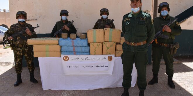 وفي إطار عمليات محاربة الجريمة المنظمة ومواصلة للجهود الحثيثة الهادفة إلى التصدي لآفة الاتجار بالمخدرات ببلادنا، أوقفت مفارز مشتركة للجيش الوطني الشعبي، بالتنسيق مع مختلف مصالح الأمن، بإقليمي الناحيتين العسكريتين الثانية والثالثة، (06) تجار مخدرات وأحبطت محاولات إدخال كميات ضخمة من المخدرات عبر الحدود مع المغرب، تُقدر بـ (12) قنطار و(76) كيلوغرام من الكيف المعالج،