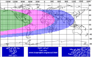 ”أما بالنسبة للدول التي ستتحرى الهلال يوم الأحد 1 ماي، فإن رؤية الهلال في ذلك اليوم، ممكنة بالتلسكوب فقط من وسط وغرب آسيا ومعظم أوروبا وجنوب القارة الإفريقية”.