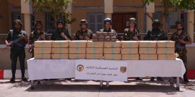 وفي إطار عمليات محاربة الجريمة المنظمة ومواصلة للجهود الحثيثة الهادفة إلى التصدي لآفة الاتجار بالمخدرات ببلادنا، أوقفت مفارز مشتركة للجيش الوطني الشعبي، بالتنسيق مع مختلف مصالح الأمن، بإقليمي الناحيتين العسكريتين الثانية والثالثة، (14) تاجر مخدرات وأحبطت محاولات إدخال كميات ضخمة من المخدرات عبر الحدود مع المغرب، تُقدر بـ (15) قنطار و(11) كيلوغرام من الكيف المعالج، في حين تم توقيف (22) تاجر مخدرات آخرين وضبط (25) كيلوغرام من نفس المادة و(190067) قرصا مهلوسا خلال عمليات مختلفة عبر النواحي العسكرية الأخرى.