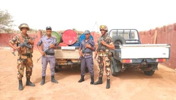 و حسب البيان فقد “تمكن اعوان الفرقة المتعددة المهام للجمارك ببرج باجي مختار, التابعة اقليميا لمصالح مفتشية الاقسام الجمارك بأدرار, بالتنسيق مع افراد الجيش الوطني الشعبي من حجز 2.000 لتر من مادة المازوت تم ضبطها معبأة في براميل بسعة 200 لتر على مثن مركبة رباعية الدفع”.