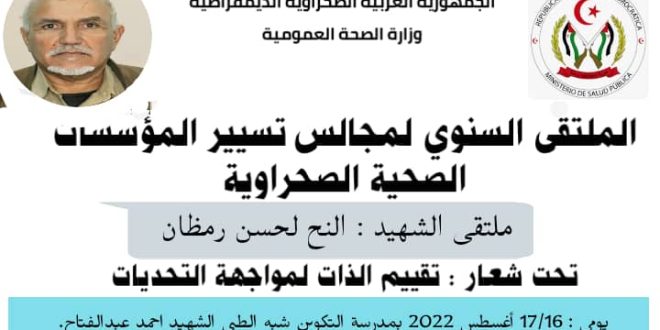 الملتقى الذي يحمل إسم الشهيد ” النح لحسن رمظان ” ، استهل بكلمة ترحيبية لمدير المدرسة، شكر فيها الحضور، متمنيا للملتقى النجاح والخروج بأفضل الصيغ التي من شأنها تعزيز دور المنظومة الصحية الصحراوية.