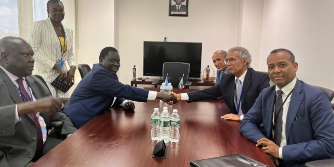 وحضر لهذا اللقاء من جانب جمهورية جنوب السودان فخامة نائب رئيس الجمهورية السيد حسين عبد الباقي اكون و السفير الممثل الدائم بالأمم المتحدة السيد اكوآي بونا ملوال و السيدة مرغاريت غابرييل شانغ مستشارة في البعثة الدائمة لدى الأمم المتحدة.