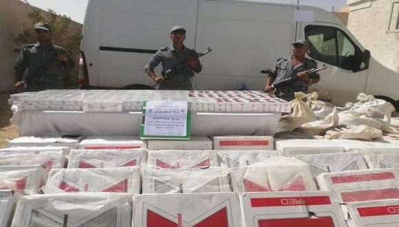 وجاء في البيان أنه ” في سياق تنفيذ برامج الرقابة الميدانية المشتركة للمصالح العملياتية للفرق الجمركية المسطرة بالتنسيق مع الأجهزة الأمنية, تمكن أعوان كل من الفرقة المتنقلة التابعة لمصالح مفتشية الأقسام للجمارك بالوادي, بإقليم اختصاص المديرية الجهوية للجمارك بورقلة, والفرقة الجهوية لمكافحة التهريب التابعة لمصالح المديرية الجهوية للجمارك بإيليزي, وعلى إثر عمليتين متفرقتين تم تنفيذهما بالتنسيق مع أفراد الجيش الوطني الشعبي, من حجز 1750 خرطوشة سجائر تم ضبطها مخبأة في مكان مهيأ خصيصا للتهريب على متن شاحنة تبريد, و15000 علبة سجائر تم ضبطها على متن شاحنة صغيرة مموهة بـ 400 كغ من ورق الحنة (بضاعة تخفي الغش)”.