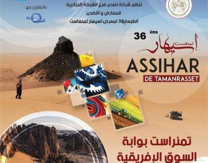 أعلنت وزارة التجارة وترقية الصادرات بالتعاون مع ولاية تمنراست عن تنظيم الطبعة الـ 36 للتظاهرة الاقتصادية “أسيهار تمنراست” في الفترة الممتدة بين 23 ديسمبر و26 جانفي المقبلين بولاية تمنراست.