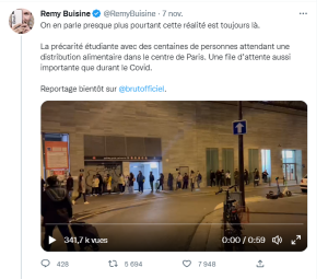 ليست المرة الأولى التي تنتشر فيها مثل هكذا مشاهد، بعدما تحولت طوابير الطلبة الى ظاهرة جديدة في فرنسا منذ بداية انتشار وباء كورونا، وتفاقم المشاكل الاقتصادية التي يعاني منها الطلاب جراء تداعيات الجائحة وانعكاسات الحرب في اوكرانيا..