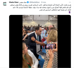 والمصيبة الكبرى في قمة شرم الشيخ هي محاولة التجسس على المشاركين من خلال تنزيل تطبيق القمة الذي يتطلب منح الحكومة المصرية إمكانية الوصول إلى مواقع المستخدمين ورسائل البريد الإلكتروني الخاصة بهم.