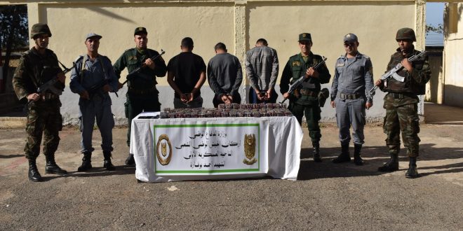 في إطار محاربة الجريمة المنظمة ومواصلة للجهود الحثيثة الهادفة إلى التصدي لآفة الاتجار بالمخدرات ببلادنا، أوقفت مفارز مشتركة للجيش الوطني الشعبي، بالتنسيق مع مختلف مصالح الأمن خلال عمليات مختلفة عبر النواحي العسكرية، (45) تاجر مخدرات وأحبطت محاولات إدخال كميات من المخدرات عبر الحدود مع المغرب، تُقدر بـ (03) قناطير و(21) كيلوغرام من الكيف المعالج،