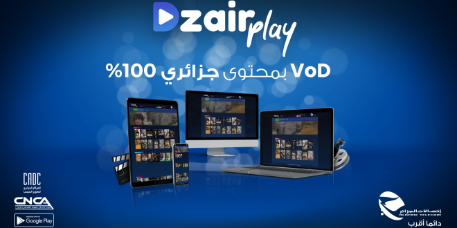 أطلقت اتصالات الجزائر، بمساهمة المركز الجزائري لتطوير السينما والمركز الوطني للسينماتوغرافيا والسمعي البصري، خدمتها الجديدة للفيديوهات حسب الطلب “Dzair Play”، التي يمكن استخدامها عبر تطبيقها المحمول بنظام التشغيل “أندرويد” (الأجهزة اللوحية والهواتف الذكية) أو عبر متصفح جهاز الحاسوب.