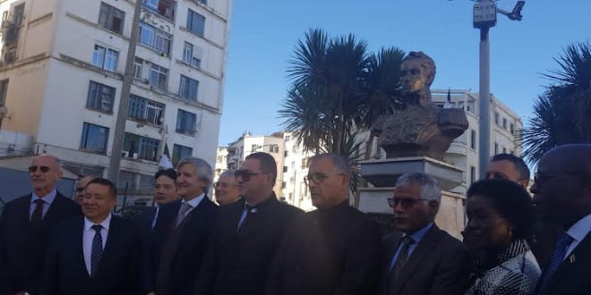 وقد تم وضع إكليل من الزهور أمام النصب التذكاري بالعاصمة الجزائرية تخليدا لذكرى هذا الزعيم المكافح، من قبل مجموعة من السفراء المعتمدين بالجزائر من بينهم السفير الصحراوي السيد عبد القادر الطالب عمر وسفيرا كوبا والبيرو.