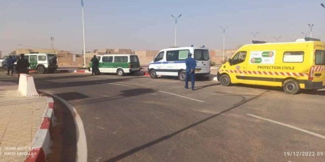 تدخلت وحدات الإسعاف لمصالح  الحماية المدنية  على الساعة 11 و46 دقيقة في حادث مرور يتمثل في إنحراف و إنقلاب سيارة رباعية الدفع على مستوى طريق الوئام على بعد 50 كلم بإتجاه برج باجي مختار بولاية أدرار