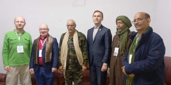 رئيس الجمهورية اطلع وفد الحزب الشيوعي الروسي على آخر مستجدات القضية الوطنية خصوصا في هذه الظرفية المفصلية من تاريخ كفاح الصعب الصحراوي ، مثمنا مشاركة الحزب في أشغال المؤتمر ال16 للجبهة معتبرها خطوة تعكس عمق العلاقات المتجذرة، التي تربط بين الحزب الشيوعي الروسي و جبهة البوليساريو .