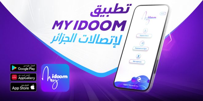 هذه الخدمة الجديدة عبر الأنترنت “My Idoom” متاحة مجانا لكافة زبائن اتصالات الجزائر عبر منصة التطبيقات جوجل بلاي، Huawei AppGallery ومتجر التطبيقات آب ستور APP Store.
