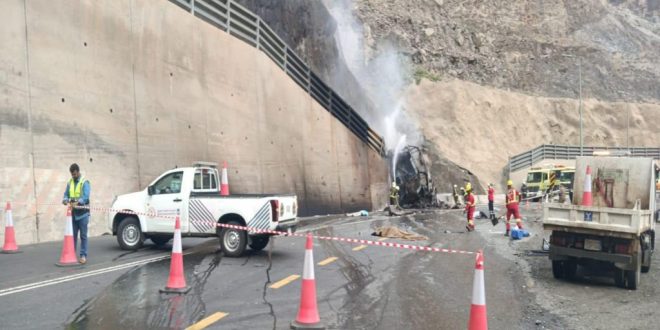 وأرجعت المصادر سبب الحادث إلى اصطدام الحافلة بأحد الجسور وانقلابها واشتعال النيران بها.