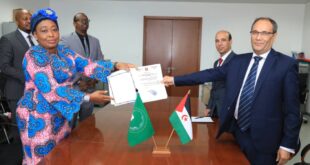 تقدمت الجمهورية الصحراوية أمس الخميس بترسيم إيداع صك المصادقة و الانضمام الى معاهدة الاتحاد الافريقي المؤسسة لوكالة الادوية الافريقية، المعتمدة باديس ابابا بتاريخ 11 فبراير 2019، لتكمل النصاب القانوني لدخول هذه الاتفاقية حيز التنفيذ. و قام السيد لمن اباعلي السفير الصحراوي لدى اثيوبيا و المندوب الدائم لدى الاتحاد الافريقي، بتقديم صك مصادقة الجمهوري الصحراوية على هذه المعاهدة، المتضمن المرسوم الرئاسي …