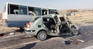 لقي 5 أشخاص حتفهم في اصطدام بين حافلة وسيارتين، صباح اليوم الأحد، بولاية المسيلة. وتدخلت مصالح الحماية المدنية على الساعة 07 سا 50د من صبيحة اليوم السبت، من أجل حادث اصطدام بين حافلة وسيارتين، على مستوى الطريق الوطني رقم 40 أولاد علي ببلدية عين الحجل بولاية المسيلة. الحادث خلف وفاة 05 أشخاص وإصابة 04 آخرين بجروح مختلفة تم إسعافهم ونقلهم …