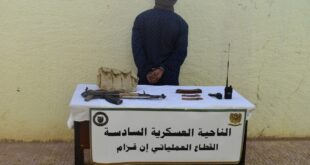 سّلم، يوم أمس 25 أفريل 2022، إرهابي (01) كان ينشط ضمن الجماعات الإرهابية بمنطقة الساحل، نفسه للسلطات العسكرية بإن ﭬزام بالناحية العسكرية السادسة، ويتعلق الأمر بالمسمى “بيرحمان إبراهيم” المدعو “الوندري إبراهيم” الذي التحق بالجماعات الإرهابية سنة 2014، الإرهابي كان بحوزته مسدس (01) رشاش من نوع كلاشنيكوف، مخزني (02) ذخيرة، جهاز (01) اتصال لاسلكي بالإضافة إلى كمية من الذخيرة. تأتي هذه …